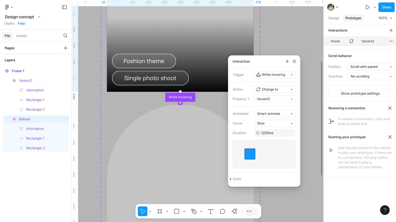 - Анимацию ставим Smart animate со скоростью 300ms.